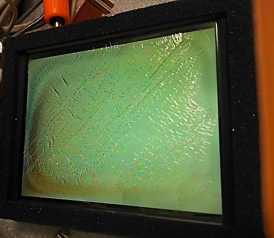 表面はビネガーシンドローム現象で皴しわになっている。結局これが問題だった。早速偏光フィルムを取り寄せて、張替えした。よくクリーニングしたためか、偏光フィルムの品質がいいか、気泡がなく綺麗に張り替えた。