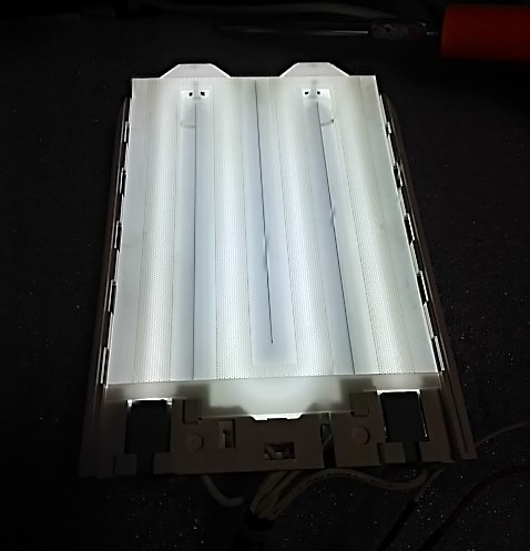 液晶パネルを取り出したら、記憶あるタイプで、バックライトはスライドして取り出すことが可能です。実際に点灯してみると、それほど明るいではないですが、また、白くていい色です。
