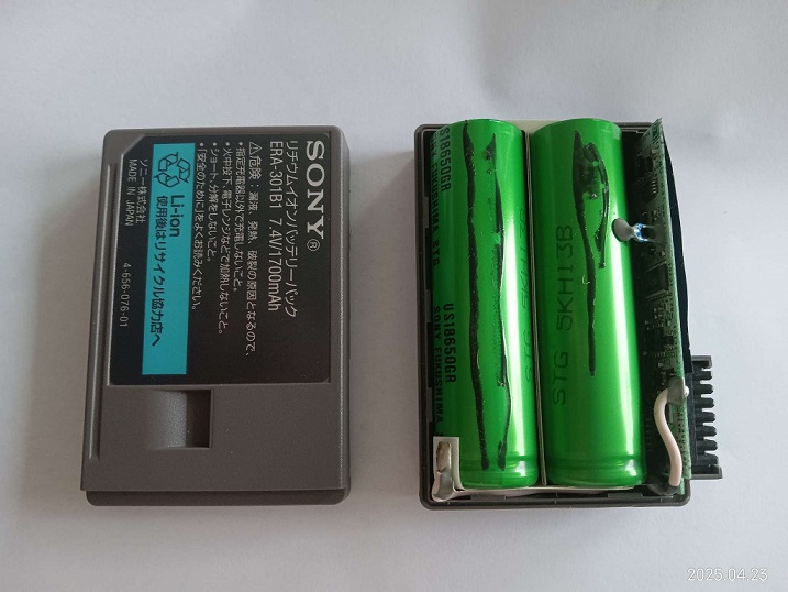 せっかく交換するので、パナソニックの大容量セール NCR18650B に交換しました。容量は3400mAhになり、元の倍です。