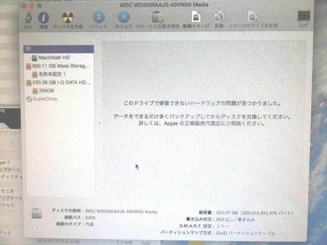 ディスクユーティリティで修復しても、マウント解除できないエラーあり、何もできない。色んな方法でデータをバックアップしようとしても読み込み失敗。諦めて、ハードディスクを取り出して、外付けでアクセスできるかどうかを考えていた。その前に、いろいろやっているうちに、なぜかファイルを読めるようになった。早速バックアップを取った。