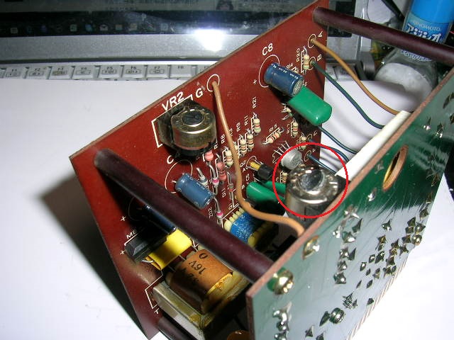 基板の外観をチェックすると、可変抵抗が一個焼き溶けた。まず、