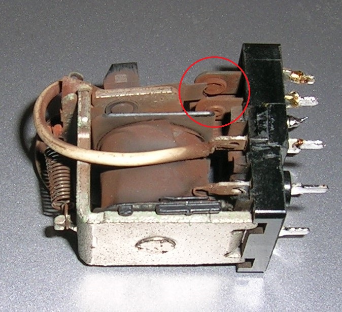 ついでに、リレーも分解してチェックした。多分過電流で、接点も溶けてなくなった。