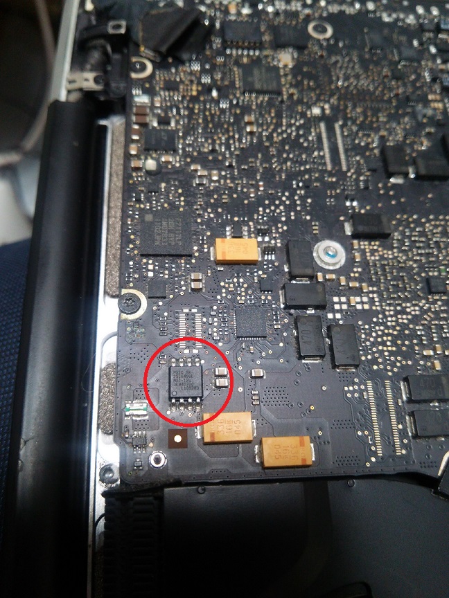 MacBook Air と Pro はファームウェアロックされたら、パスワードがわからないと使えない。色んな情報を記録するEPROMに記録したパスワードをクリアすれば、新規のようにまだ使える。 MacBook Pro 13 early 2011 A1278 の場合、EPROM は次のものに間違いない。